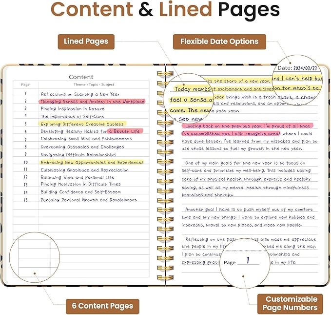 - Sturdy Construction: Our Lined Spiral Journal Notebook is built to last with a sturdy metal twin-wire binding and a tough hardcover. The water-resistant cover shields your notes from damage, while the double-wire design allows for easy folding and flat laying.
