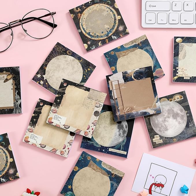 Post it Notes 3x3 Cute and Aesthetic Sticky Notes Planner Notepad - 450 Sheets - Desk Accessories for School, Office, and Home - Ideal Gifts for Teachers, Women, and Coworkers (Moonshine)