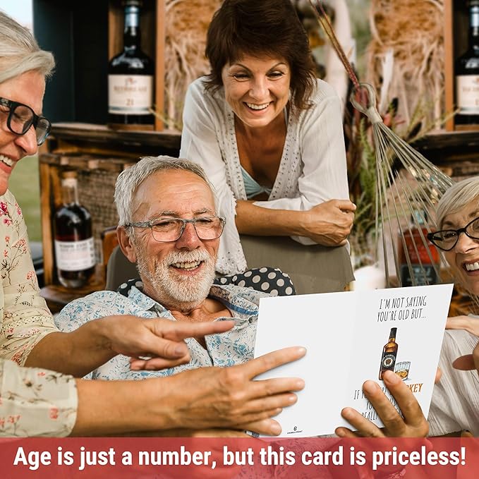 Funny Birthday Card for Men, Husband, Him, Boyfriend, Humorous Bday Gifts For 40th 50th 60th 70th 80th, Whiskey Greeting Birthday Card Premium Quality Cardstock, Kraft Envelope & Sticker