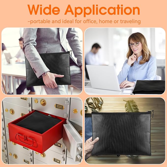 - Large Size: Measuring 10" x 13.5", this black fireproof bag is large enough to store documents, passports, certificates, money, and small valuables