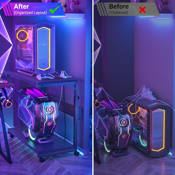 - CPU Holder with Outlets - Built-in useful electrical power outlets and USB ports (3 AC outlets + 2 USB charging ports) for your devices to plug in. It is handy and easier to plug in your computer tower, phone, iPad, or PC monitor. So you can keep cables better controlled.