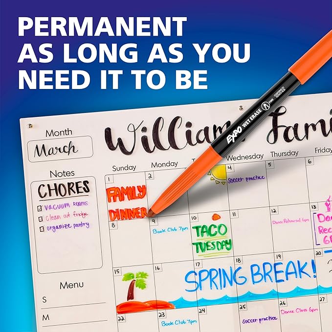 EXPO Wet Erase Markers, Semi-Permanent Markers, Assorted, Fine Tip, 8 Count