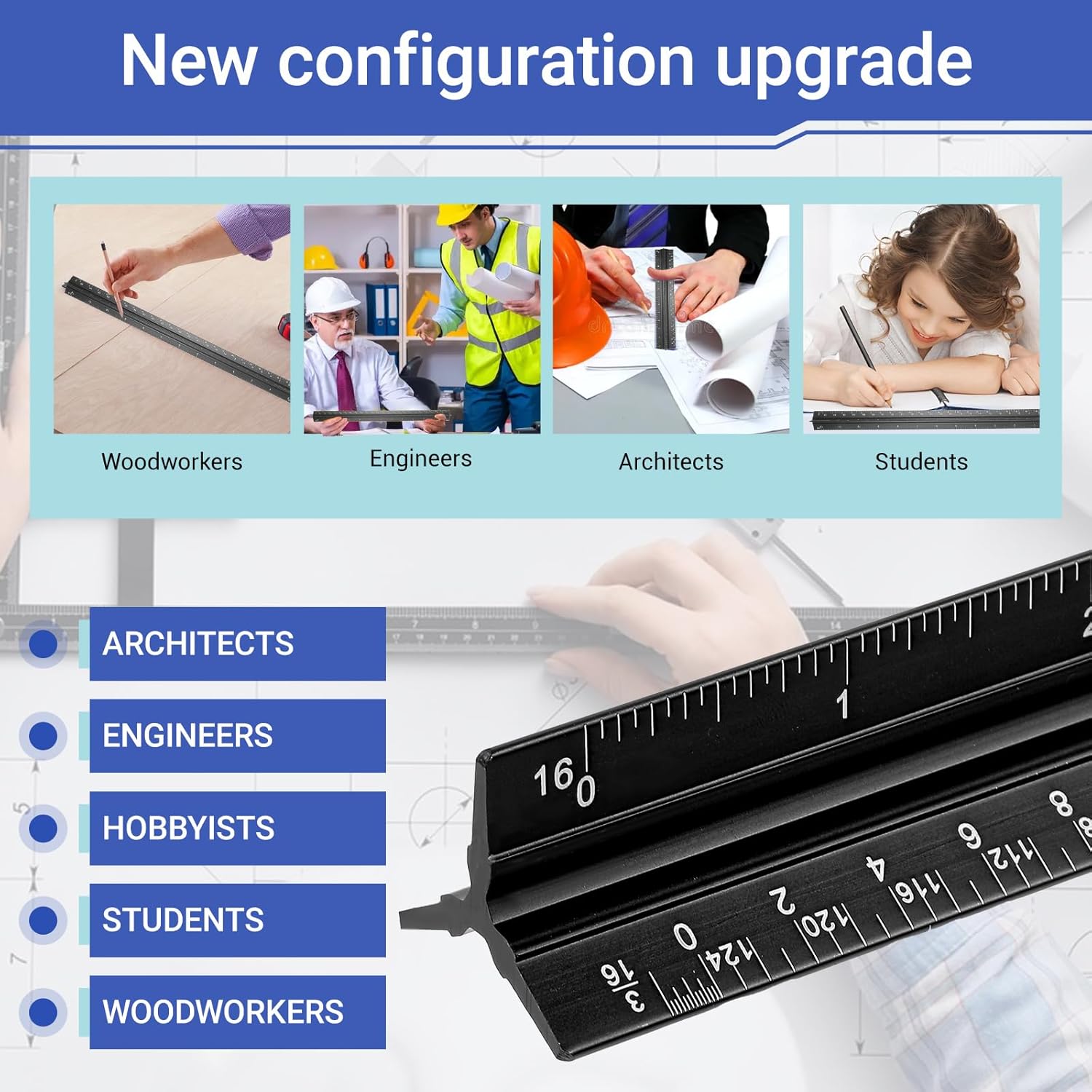 - Three-sided Scales: the size of each engineering ruler is approximately 32.5 x 2.55 x 2.25cm, and the three-sided scales include 16, 3, 1-1/2", 1, 3/4", 1/2", 3/8", 3/16", 1/4", 3/32" and 1/8", a professional-grade tool with extremely high precision
