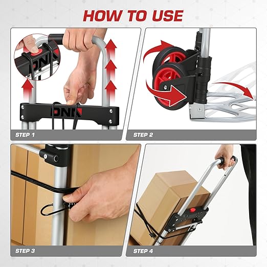 - GREAT LOAD CAPACITY - The DNA foldable hand truck has excellent load-bearing capacity, with a maximum load weight of 176lbs sufficient to meet daily transport demand; The folding design will prevent it from taking up too much space when idle; Comes with an elastic rope that helps stabilize, making transportation more reassuring
