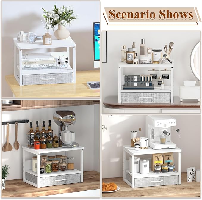 - 【Multifunctional Desktop Organizer】Can be used as a printer stand, laptop riser, desktop organizer shelf, spice rack organizer, coffee station, vanity organizer and so on. It can be used in home, office, kitchen, dorm, craft room as an ideal organizer and storage.