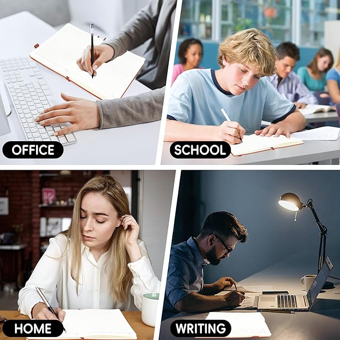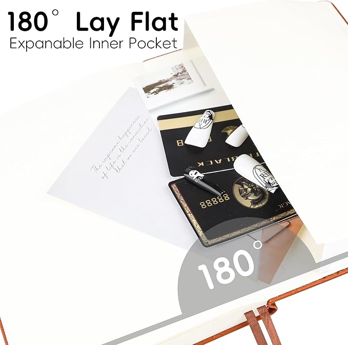 - 🗃️180°Lay Flat Design: The classic lined notebook can be laid flat and fully spread out 180° without hindering your writing, widened elastic closure band, which can be closed tightly to protect your contents, making writing easier for both right and left-handed users, which make the best use of your writing space.