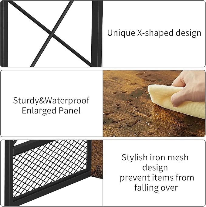 - X-shape&Iron Mesh Design:The X-shaped support design between iron pipes significantly improves the printer shelf's stability. The bottom is equipped with diamond-shaped iron mesh. These designs not only prevent papers, files and documents from falling but also adds a touch of modern elegance to the overall look.