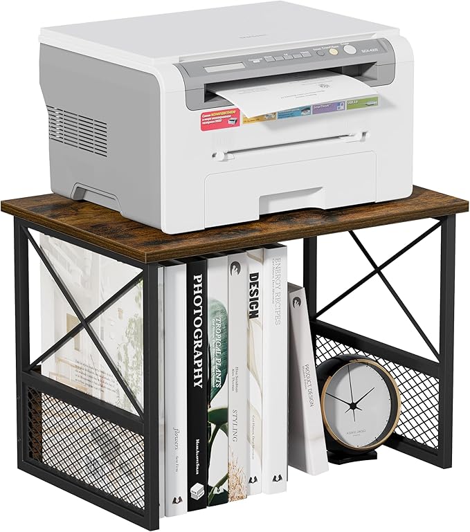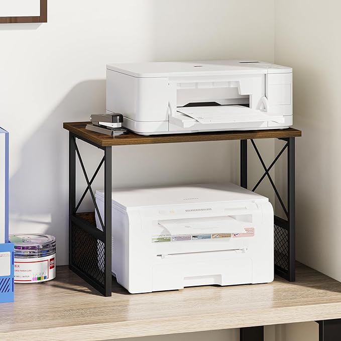 Printer Stand for Desk, Desktop Printer Stand Shelf Organzier for Home Offic, for Above and Under Desk, Fax Machine Copier Scanner, Rustic Brown