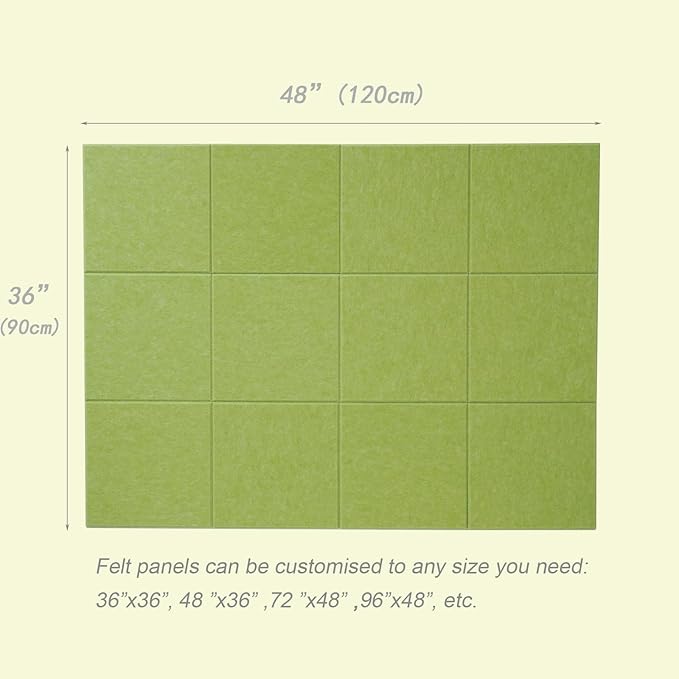 LAJAR Large Felt Wall Tiles, 12 Pack Cork Board Alternative with Removable Adhesive Tabs, Bulletin Pin Boards for Office, School and Home (Fruit Green)