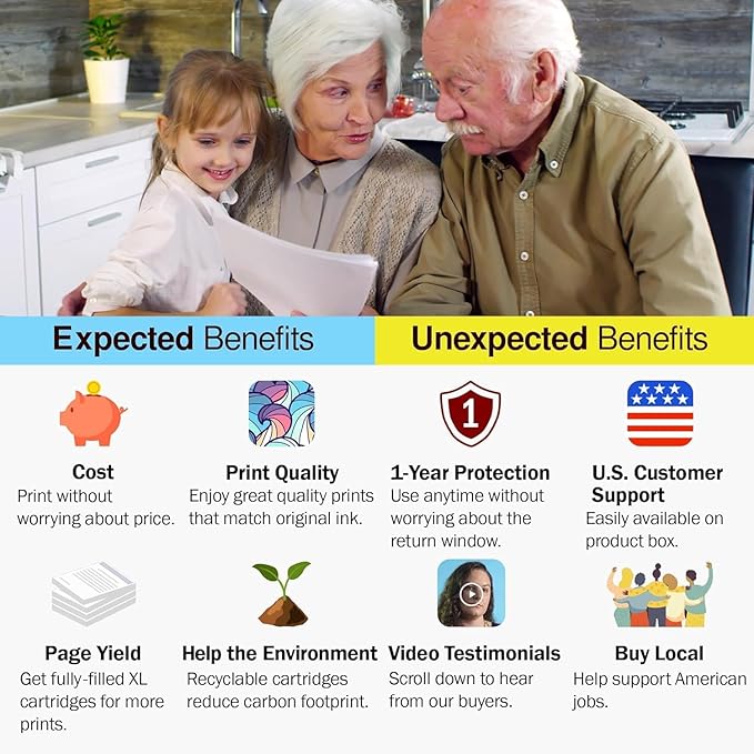 - SMOOTH, ZERO HASSLE INSTALLATION. Effortlessly install your cartridges in less time it takes to print a test page with instant printer recognition. Our phone tech support team is also readily available for any questions.