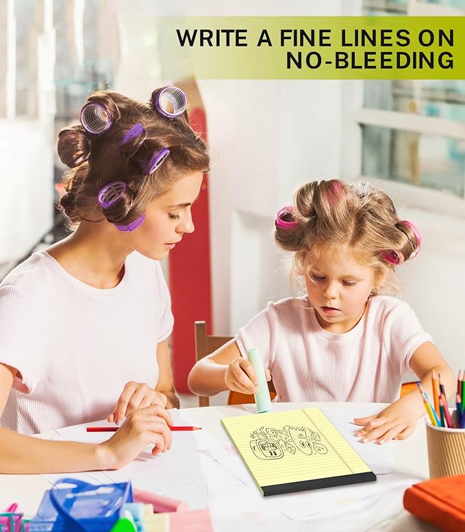 - 【 Strong Binding and Perforation 】The top of our small legal pad uses a strong and easy-to-tear production concept, along the blacktop wrap line, you can easily tear each page, and the paper is intact. Smooth and Thickened colored paper allows your pen to slide easily across the paper. To prevent ink from oozing and spilling, our small lined notepads are thicker than regular note pads, giving you a luxurious writing experience.