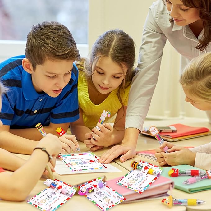 - 【Perfect Gift for Valentine's Day】 Easily switch between four colors with these multi-color pens. Each color is equally vibrant and paired with Valentine's Day cards, you can give them as Valentine's Day gifts to your kids, classmates, coworkers, boyfriends, girlfriends, and others, and you can also use these cards as Valentine's Day exchange gifts in the classroom and office.