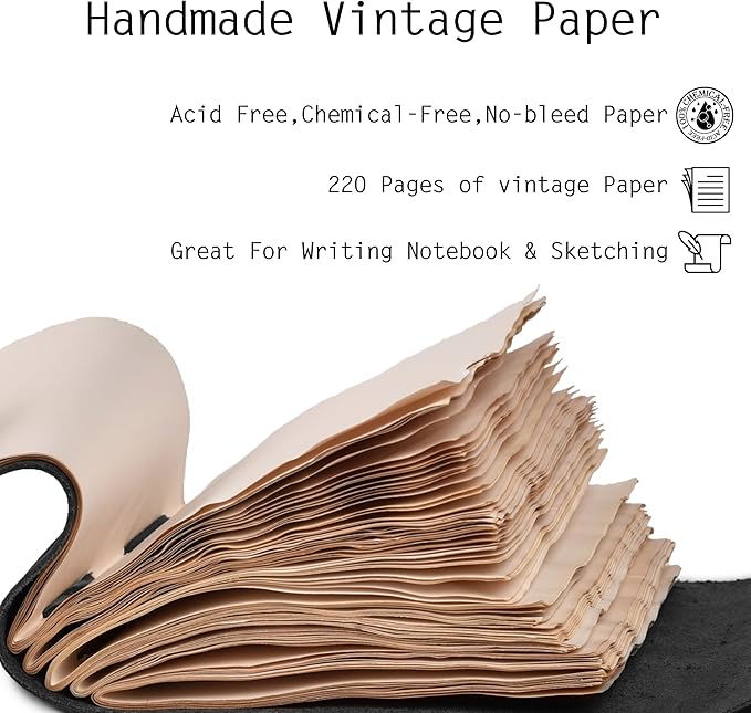 - Premium Quality Vintage Paper: Features 220 pages of 100gsm weight, acid-free, pH-neutral paper, ensuring durability and compatibility with all kinds of pens & Pencil without bleed-through.