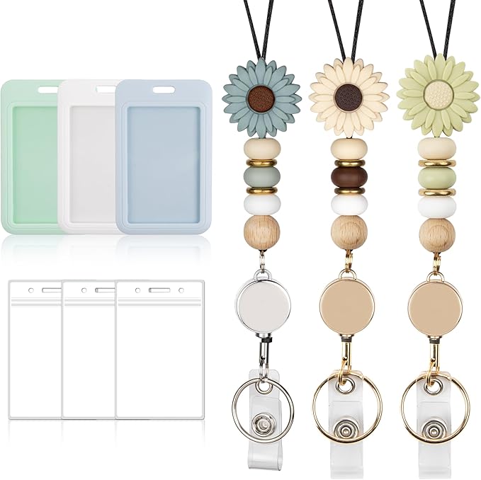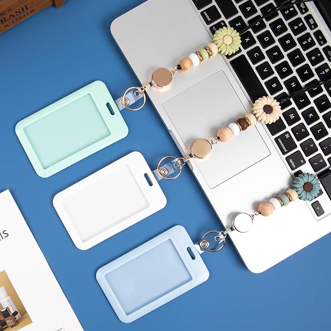- Durable and Reliable Materials: The beaded ID lanyard is crafted from premium silicone and wooden beads, featuring a robust alloy rotatable buckle. Its modern daisy design brings a fashionable element to your daily outfit