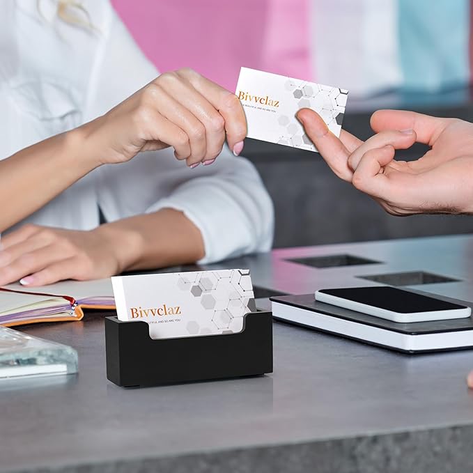- Unique & Practical Design: Our desk business card holder features an wide opening for easy access. The unique design of business card organizer not only ensures the functionality of the product, but also becomes a elegant decoration for office and home.