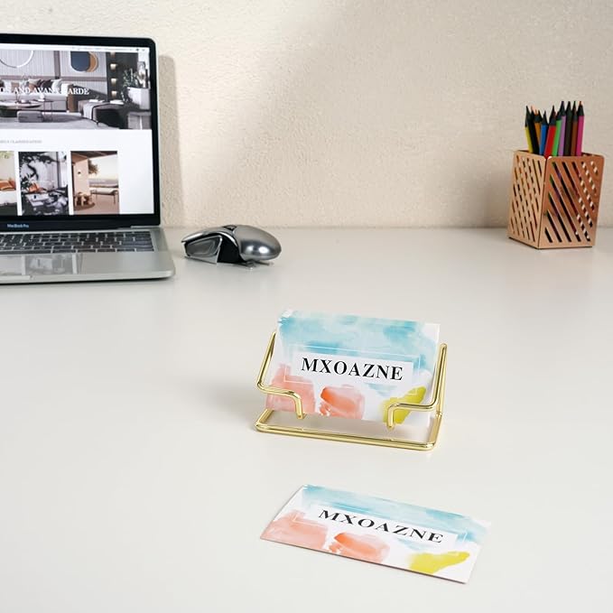 - ๐๐๐ฉ๐๐ฌ ๐๐๐ซ๐ ๐ ๐๐๐ฉ๐๐๐ข๐ญ๐ฒ: The gold business card display can easily hold about 50 standard business cards. Clean modern lines and professional looking. Perfect fit for any desk office or home