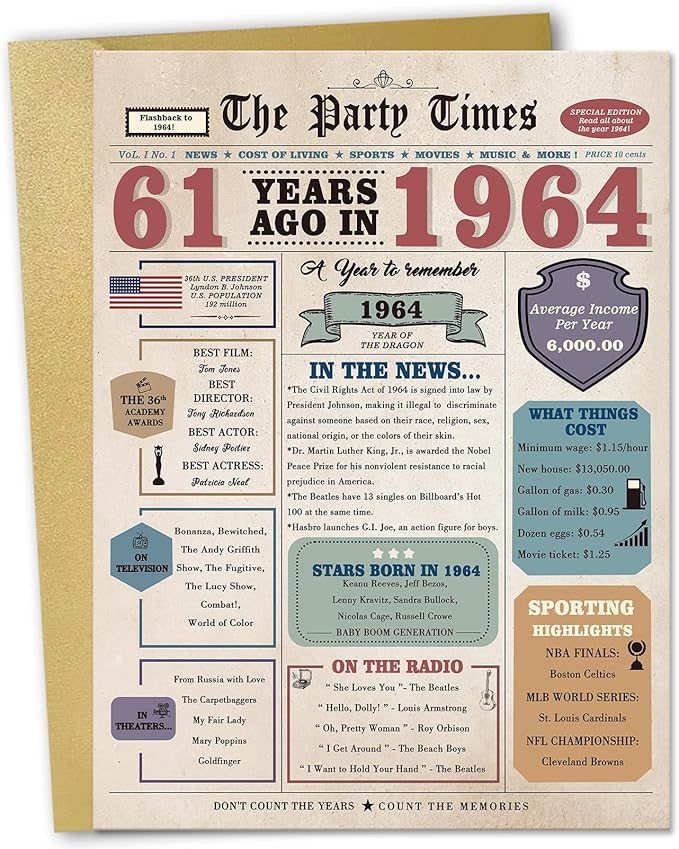 - 【Product Size】A 10.6 x 7.9 inches 61 year old birthday card stands out for its oversized size. It comes with an envelope for easy mailing or gifting