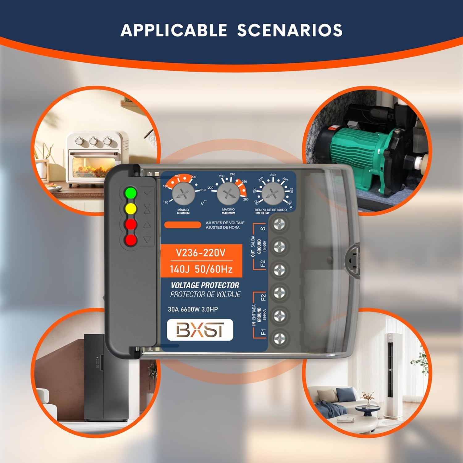 BXST Wiring Surge Protector with Adjustable Over/Under Voltage Protection Power Suppressor Protector, 220V, 30A, Up to 6600W Heavy Duty Power Surge Protection for Refrigerators, Air Conditioning, TV