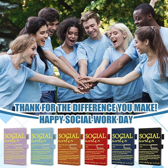 - Package Content: the social worker gifts collection includes 6 A5 leather notebooks and 6 matching black ballpoint pens, bearing the trendy 'social worker' imprint, making it an ideal gift for loved ones or as a chic addition to your stationery stash; Each journal notebook is filled with 100 sheets, equivalent to 200 pages, there's sufficient space to explore your creativity without bounds