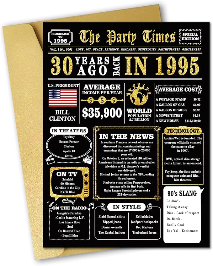 - PERFECT GIFT IDEA -Find interesting 30th birthday cards for your friends. The cards contain some specific events in 30 years ago, which can help you review interesting events with family and friends.