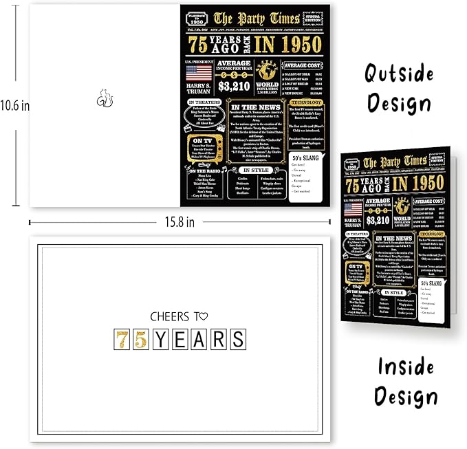 - PERFECT GIFT IDEA -Find interesting 75th birthday cards for your friends. The cards contain some specific events in 75 years ago, which can help you review interesting events with family and friends.