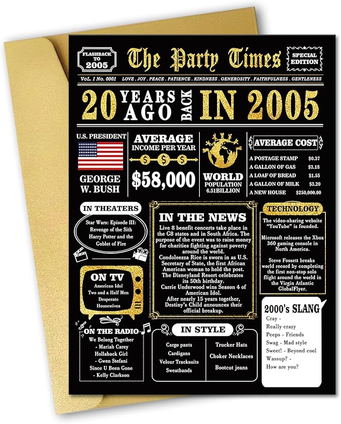 - PERFECT GIFT IDEA -Find interesting 20th birthday cards for him/her. The cards contain some specific events in 20 years ago, which can help you review interesting events with family and friends.