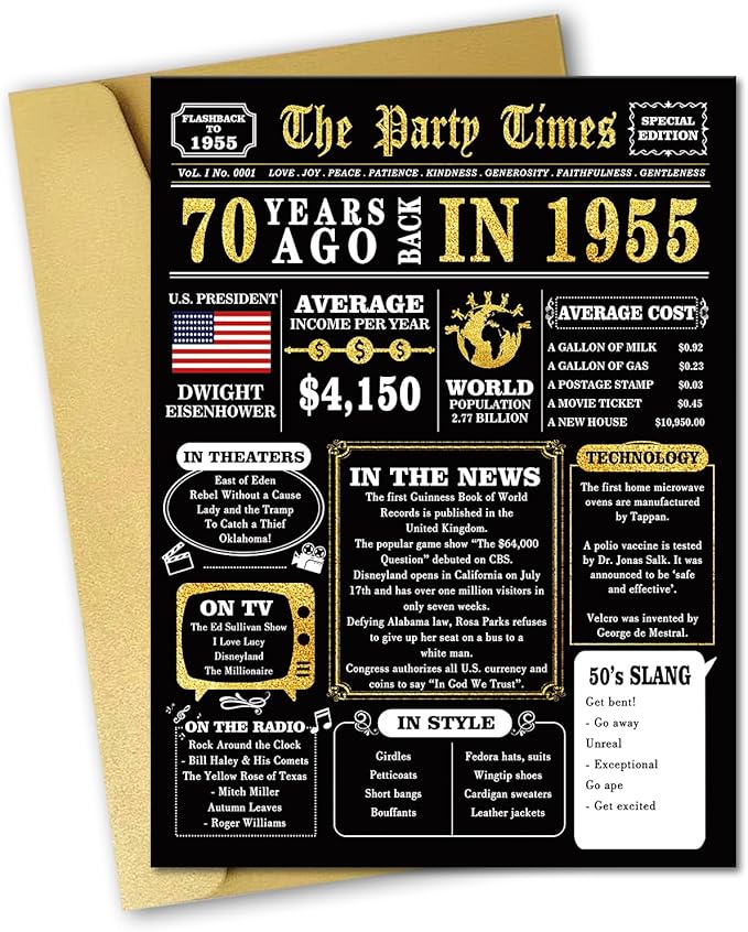 - PERFECT GIFT IDEA -Find interesting 70th birthday cards for your friends. The cards contain some specific events in 70 years ago, which can help you review interesting events with family and friends.