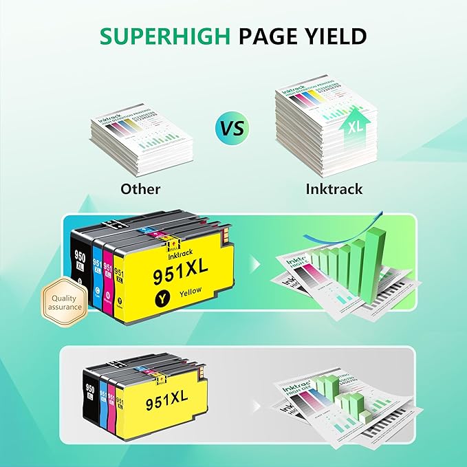 - 𝐒𝐮𝐩𝐞𝐫𝐢𝐨𝐫 𝐏𝐫𝐢𝐧𝐭 𝐐𝐮𝐚𝐥𝐢𝐭𝐲: Inktrack for HP 950XL and 951XL Ink Cartridges Combo Pack are available for all firmware version printers
