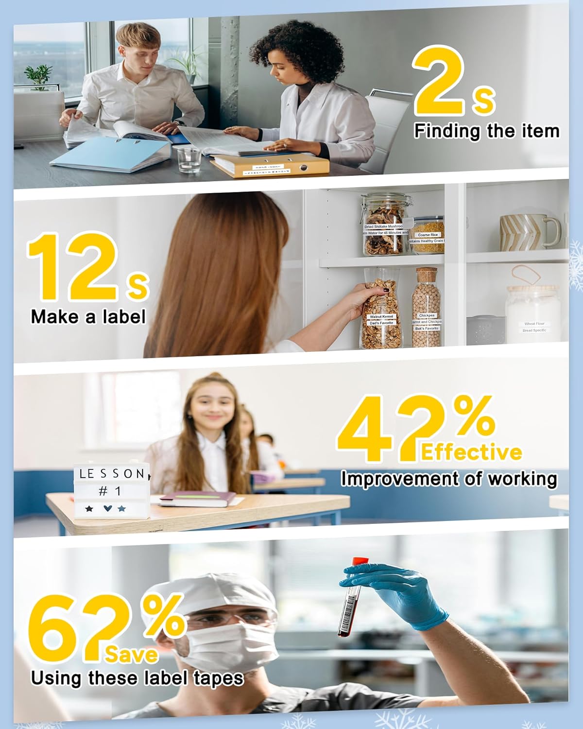 - EASY-TO-USE : Spliting back makes it easy to peel and apply. No sticky residue remains when lables are removed