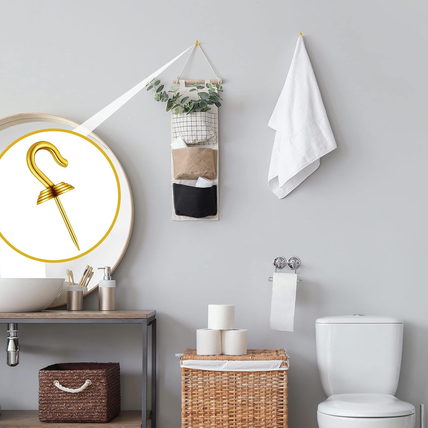 Hotop 60 Pieces Push Pin Wall Hooks Metal Thumb Tack Hangers Iron Alloy Nail Decorative Picture Hooks for 20 Lbs Home Office School Party Supply (Gold)