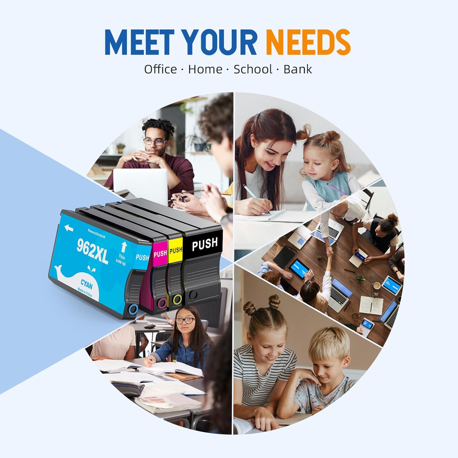 - Package Content: 962xl black ink, 962xl cyan ink, 962xl magenta ink, 962xl yellow ink (black and color combo pack, totally 4 packs 962 ink cartridges).