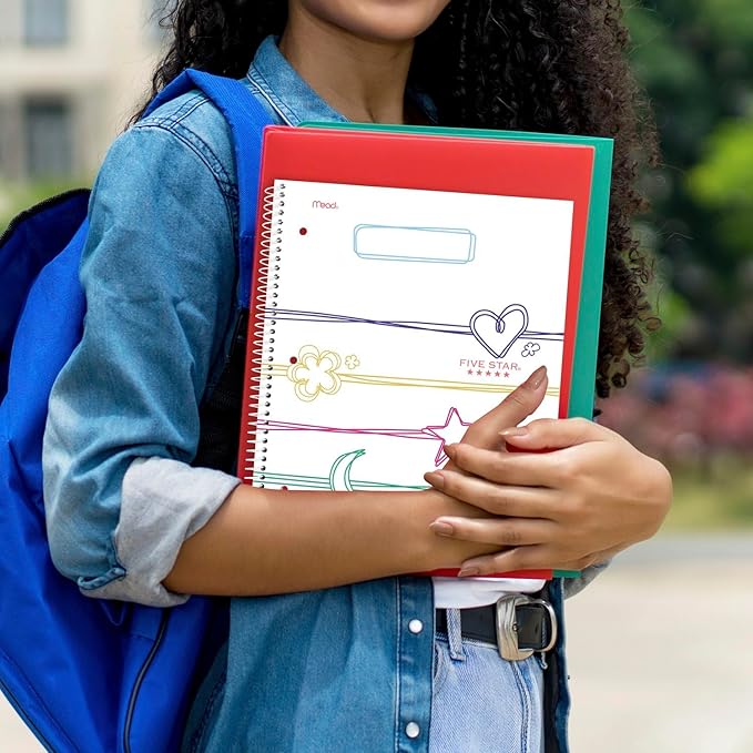 Five Star Spiral Notebook + Study App, 1 Subject, Wide Ruled, 8" x 10-1/2", 80 Sheets, Pastel Doodles (930212F-ECM)
