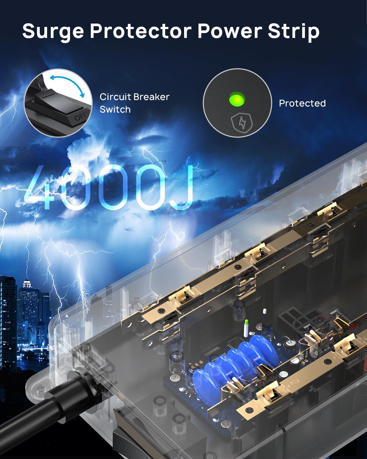 - 4000 Joules Surge Protection: This ETL-listed surge protector is made from high-quality UL94 V-0 flame-retardant material. With a high surge protection rating, it helps safeguard your electronics from power spikes, surges, and lightning strikes