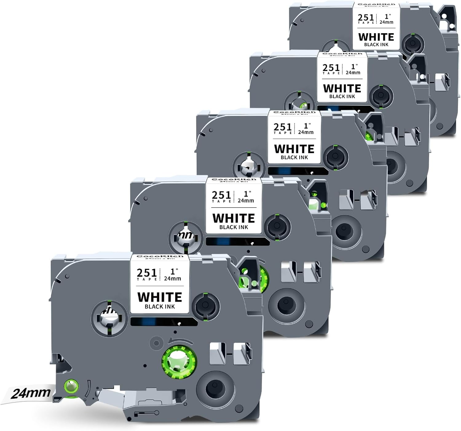 5-Pack TZe-251 TZ Tape 24mm 0.94 Laminated White Compatible for Brother P Touch Label Tape TZe 251 TZe251 TZ-251 for Ptouch PT-D600 PT-D610BT PT-D600VP PT-P710BT PT-P700 Label Maker, 1 Inch x 26.2 Ft