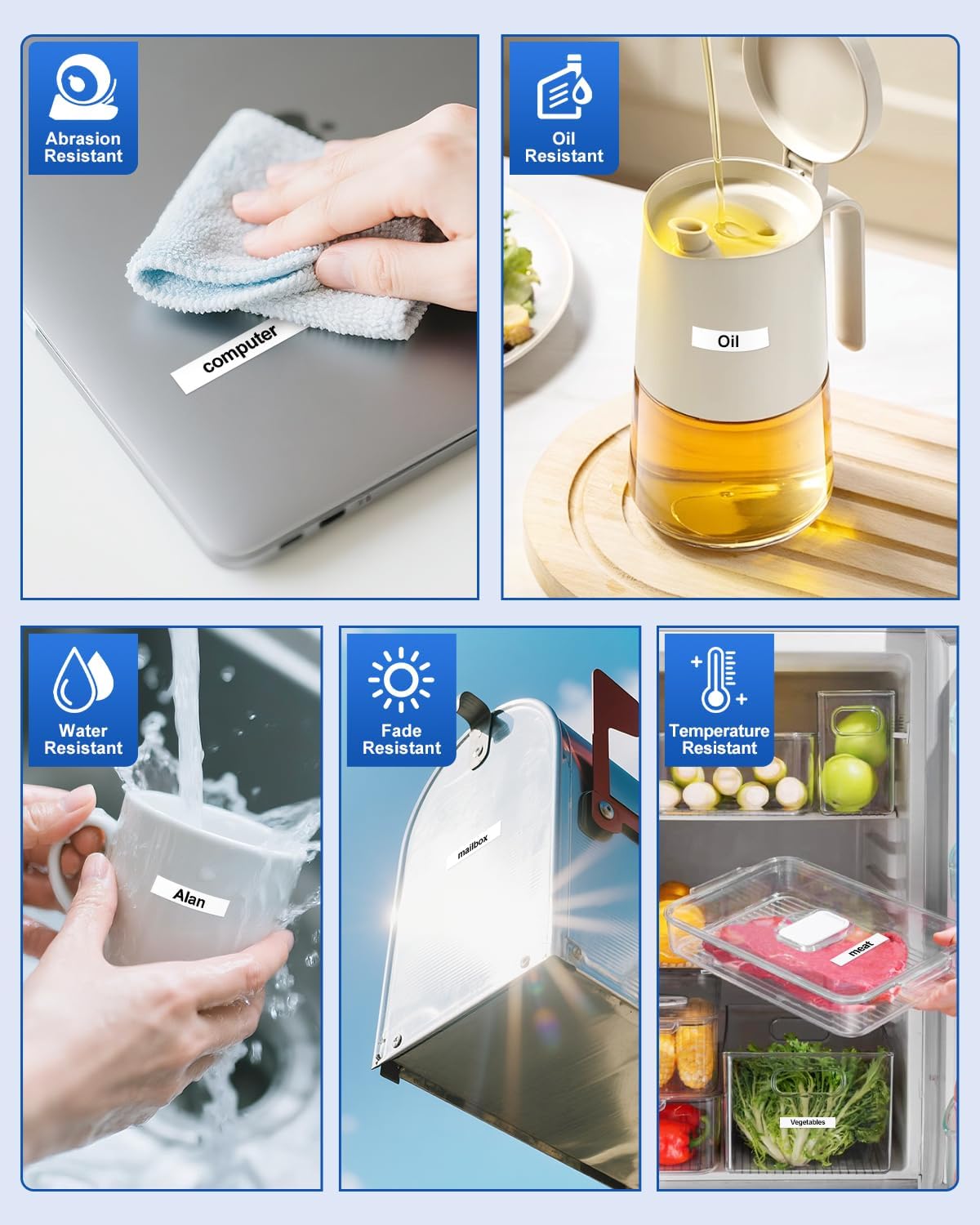 - Features: Our 9mm label tape split design makes the label tape easy to peel and apply, with strong adhesion/waterproof/temperature/oil/abrasion/fading, and reliably sticking to various surfaces