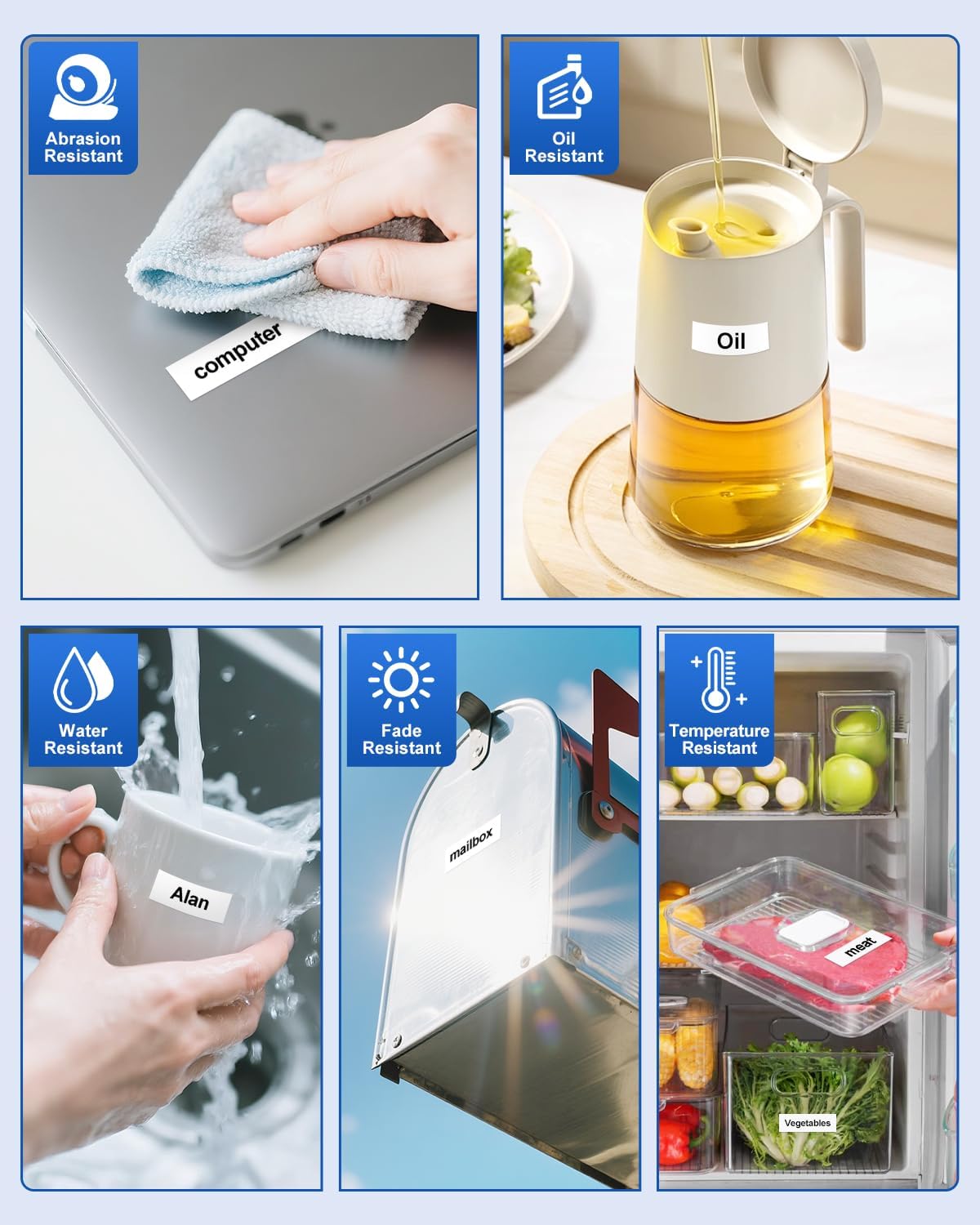 - Features: Our tze tz 18mm 3/4 inch black on white label maker tape split design makes the label tape easy to peel and apply, with strong adhesion/waterproof/temperature/oil/abrasion/fading, and reliably sticking to various surfaces
