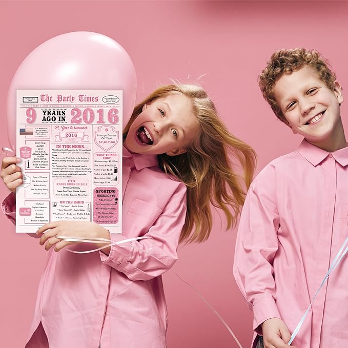 - Best 9th Birthday Card: Celebrate your girl's journey of 108 magical months with this cute newspaper-style card that captures her birth year 2016,Turns 9th birthday into a "Born in 2016" time-travel experience,it's more than a card,it's a love letter to the 3,285 days you've watched her grow into this radiant 9-year-old star. This beautifully designed card is perfect for celebrating a special girl's 9th birthday.