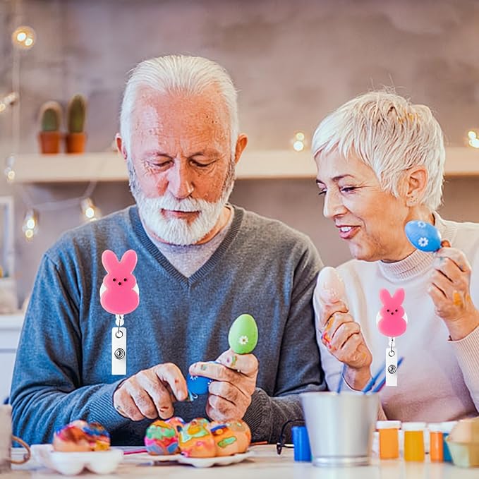 Easter Badge Reels Nurse Badge Reel,Funny Badge Reel,Cute Pink Bunny ID Name Badge Holder Full Cover Retractable Acrylic Clips for Office Teacher Student Nurse Doctor