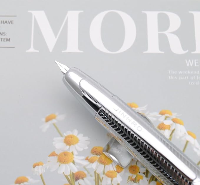 JINHAO 10 Press Fountain Pen, Retractable Metal Pen with Ink Converter (EF Nib 0.38mm, Wavy Texture Bright Silver)
