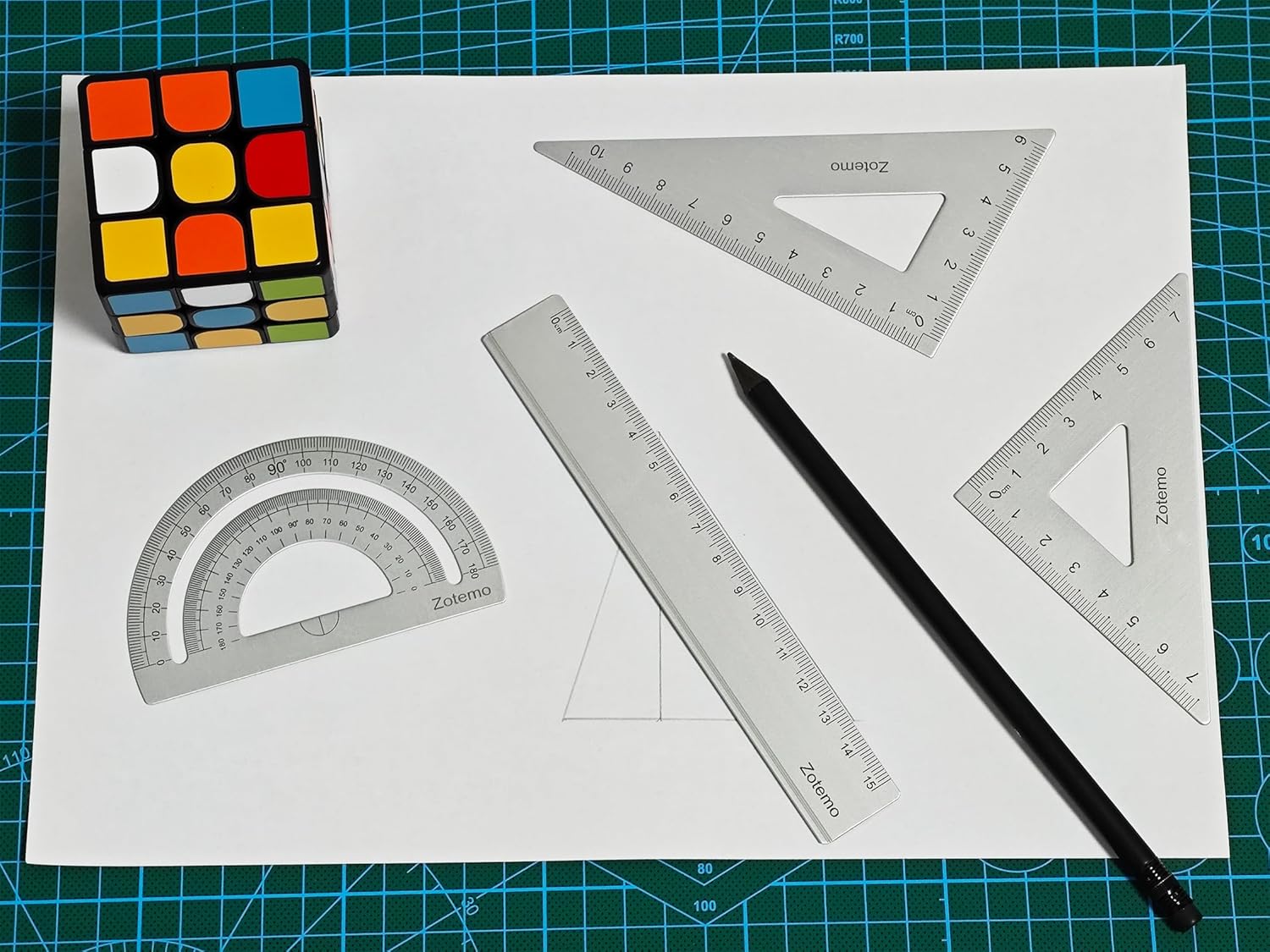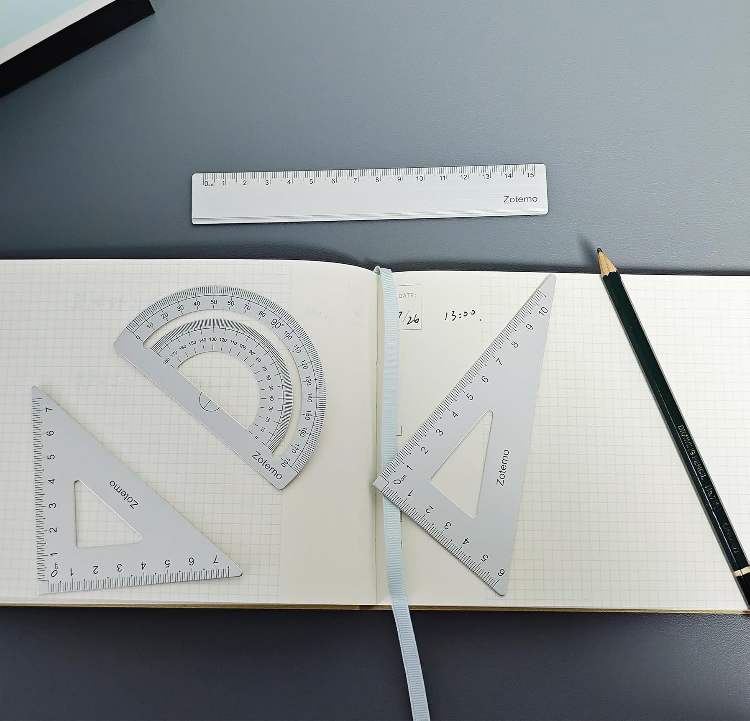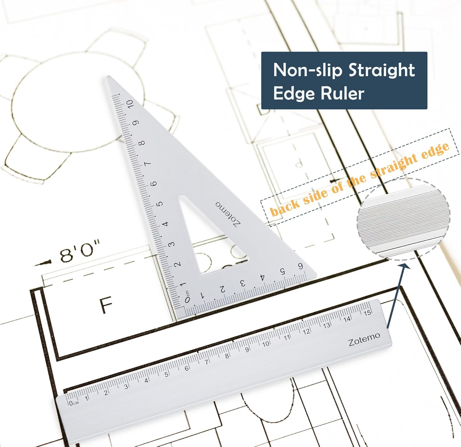 - COMPLETE SET: 4-piece geometry set includes two triangular rulers, one 15cm straight edge ruler, and one aluminum protractor for all your measuring needs