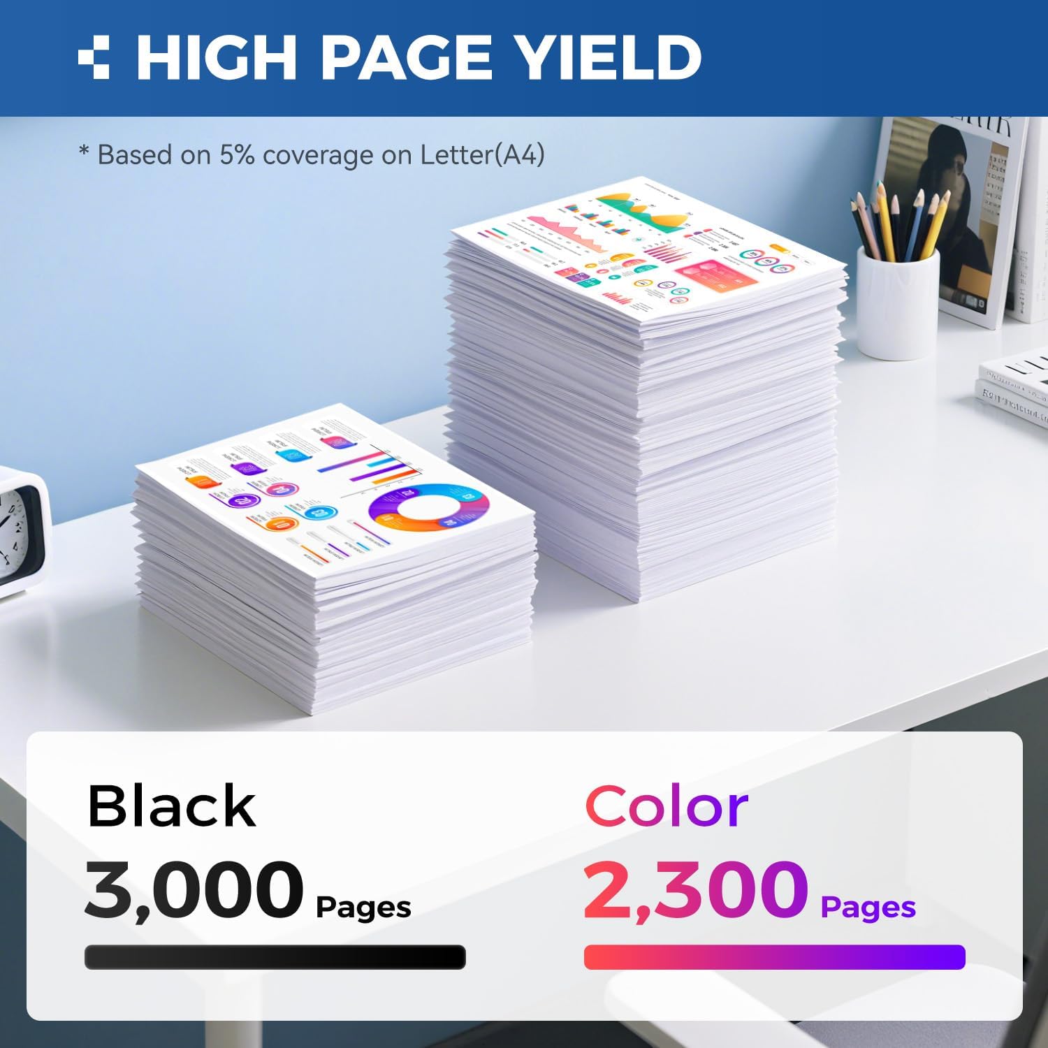 - High Yield Pages: 3,000 pages for Black and 2,300 pages Color toner cartridge (A4, 5% Coverage)