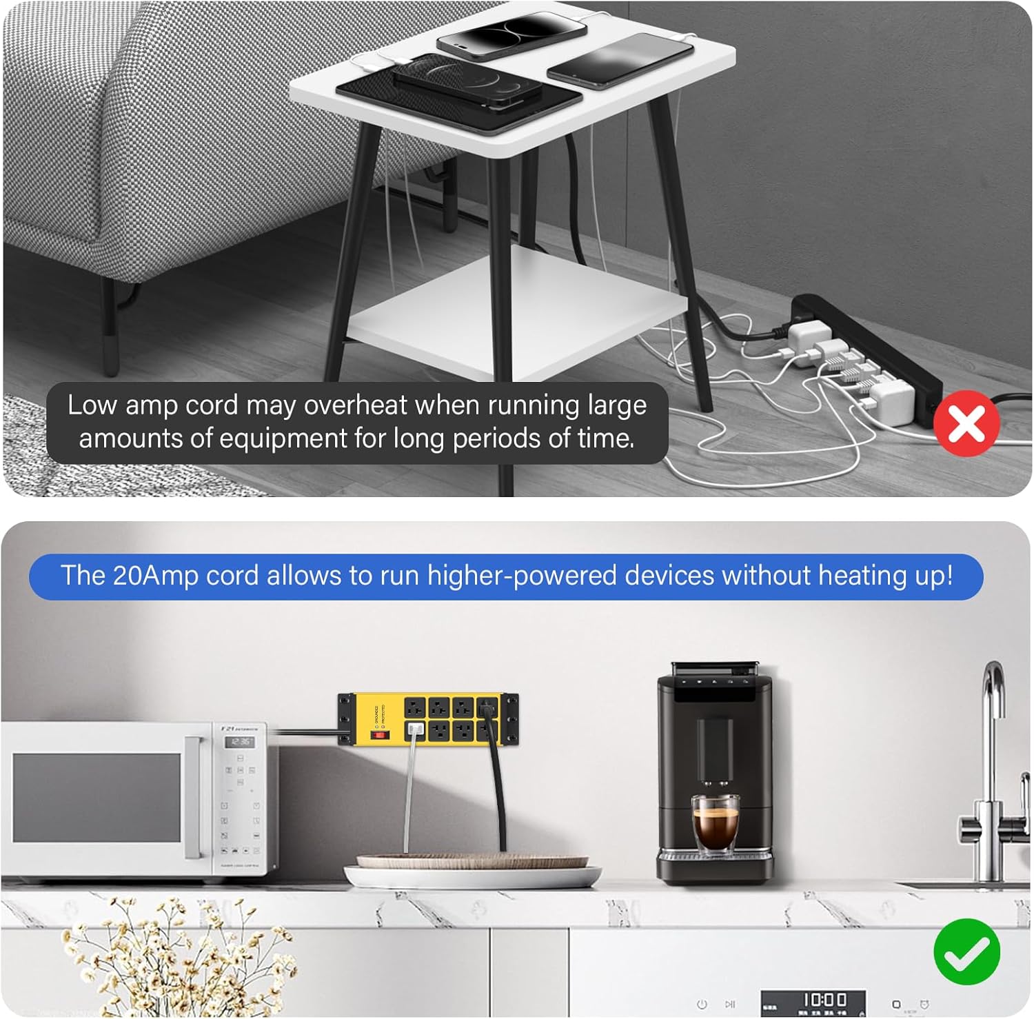 CCCEI 2PCS Heavy Duty Power Strip Surge Protector 20 AMP, 8 Outlets 12 Gauge Shop Garage Metal Multiple Outlets, 4 FT Extension Cord 5-15P Adapter High Amp 6-20R T-Slot 20a for Appliance Yellow.