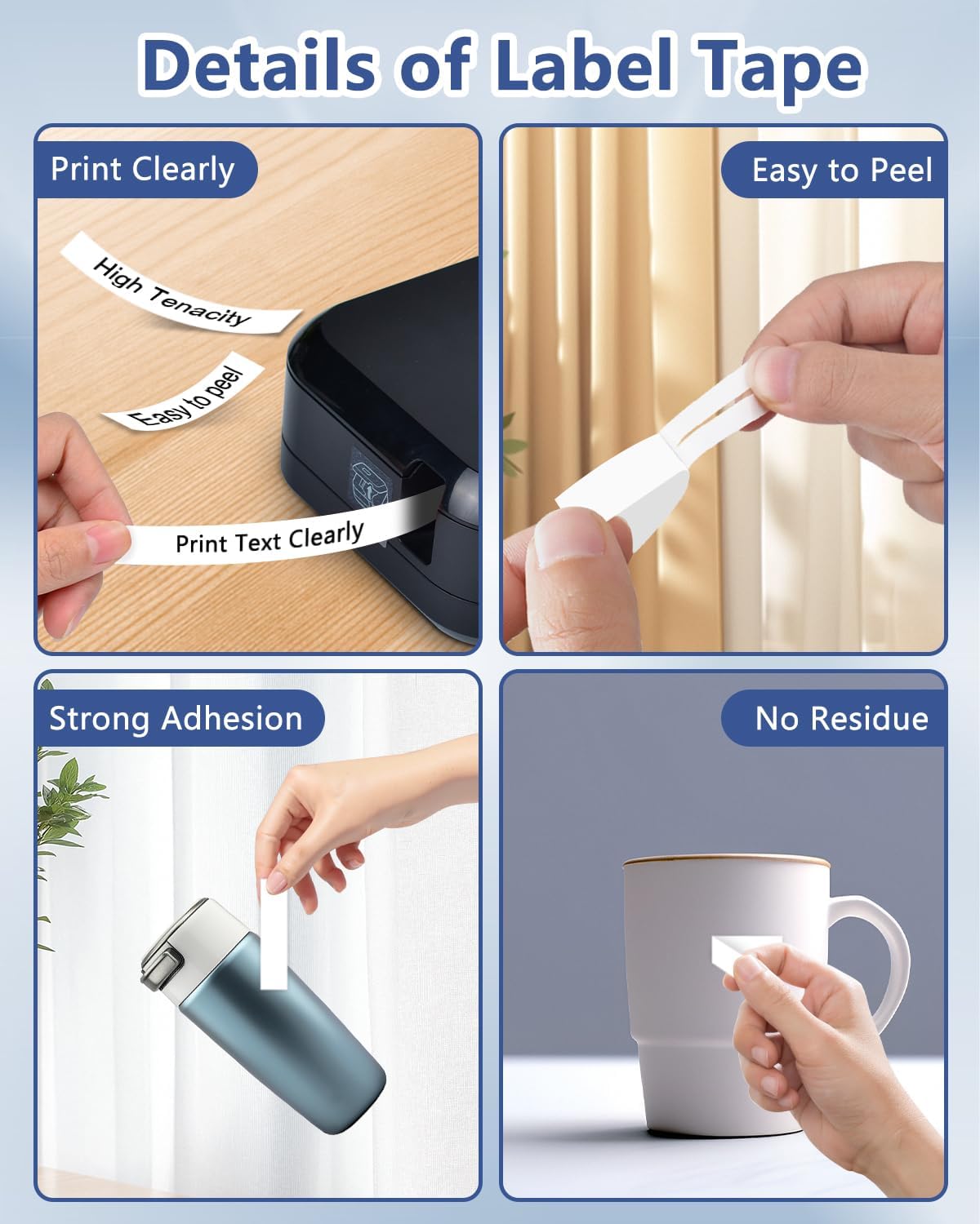 - The extraordinary adhesive properties and split back of the P touch tape is easy to peel and apply to the toughest labeling tasks including uneven surfaces, surfaces exposed to harsh environments, slippery painted metal and plastic surfaces, and much more. No sticky residue remains when the labels are removed.