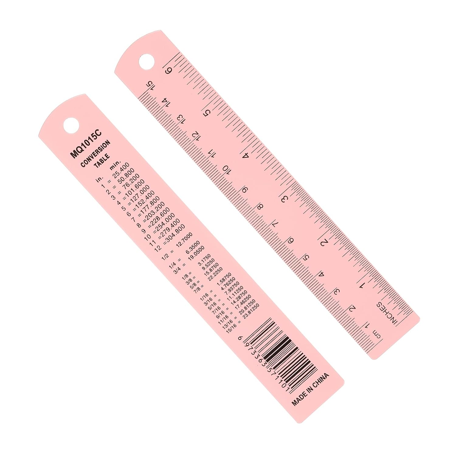 PATIKIL 15cm/6" Metal Ruler, 2 Pack Aluminum Alloy Rulers with Centimeters, Millimeters, Inches and Conversion Table Straight Edge Ruler for Writing Machinist Drafting, Pink