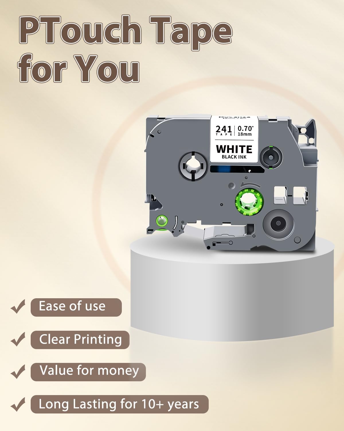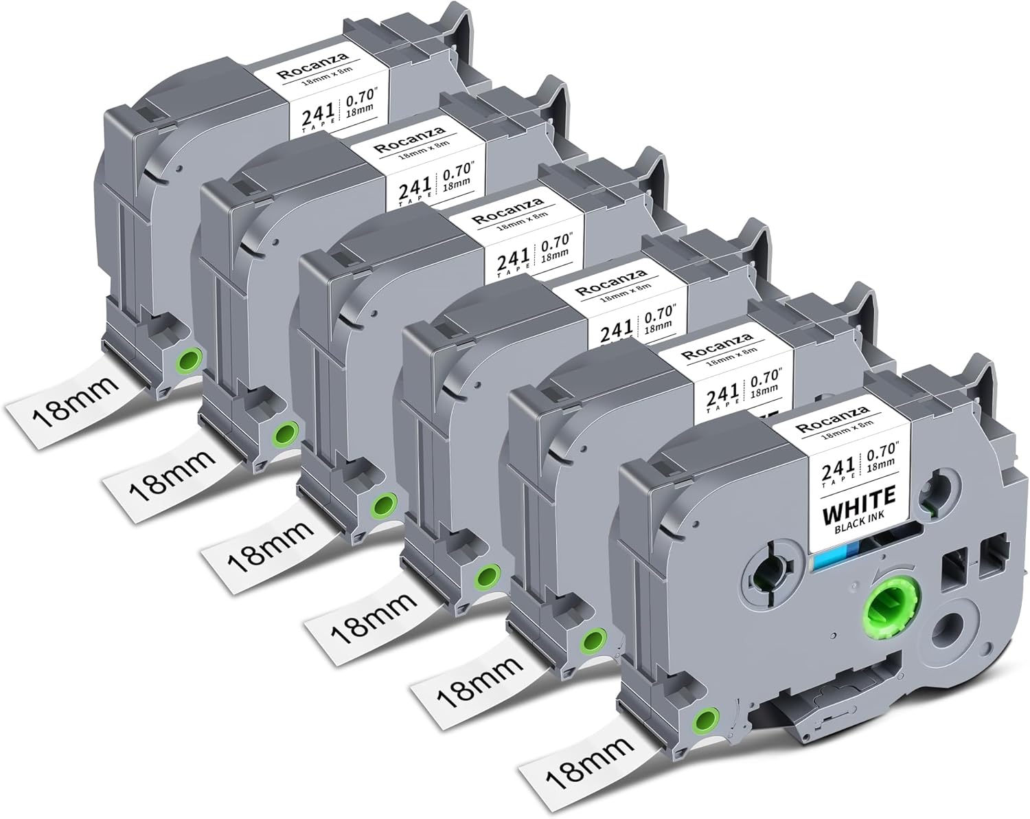 TZe-241 TZ 18mm 0.7 Laminated White Compatible with Brother Label Maker Tape 3/4" PTouch Tape TZe241 Work with Brother P Touch D410 D460BT 2040 1880 1890 E550W P700 P710BT, 6-Pack