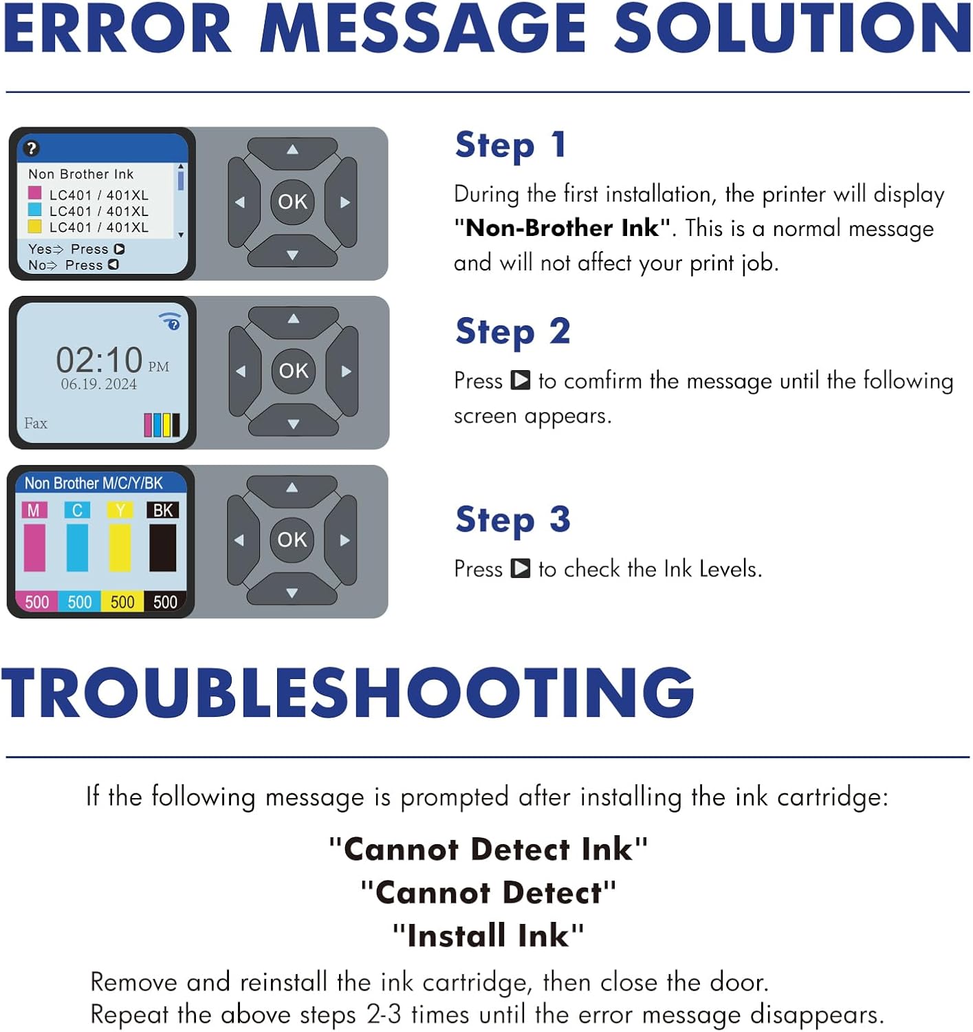 - Product Model: 4 Pack LC401 LC401XL Ink Cartridges for Brother Printer Black Cyan Magenta Yellow