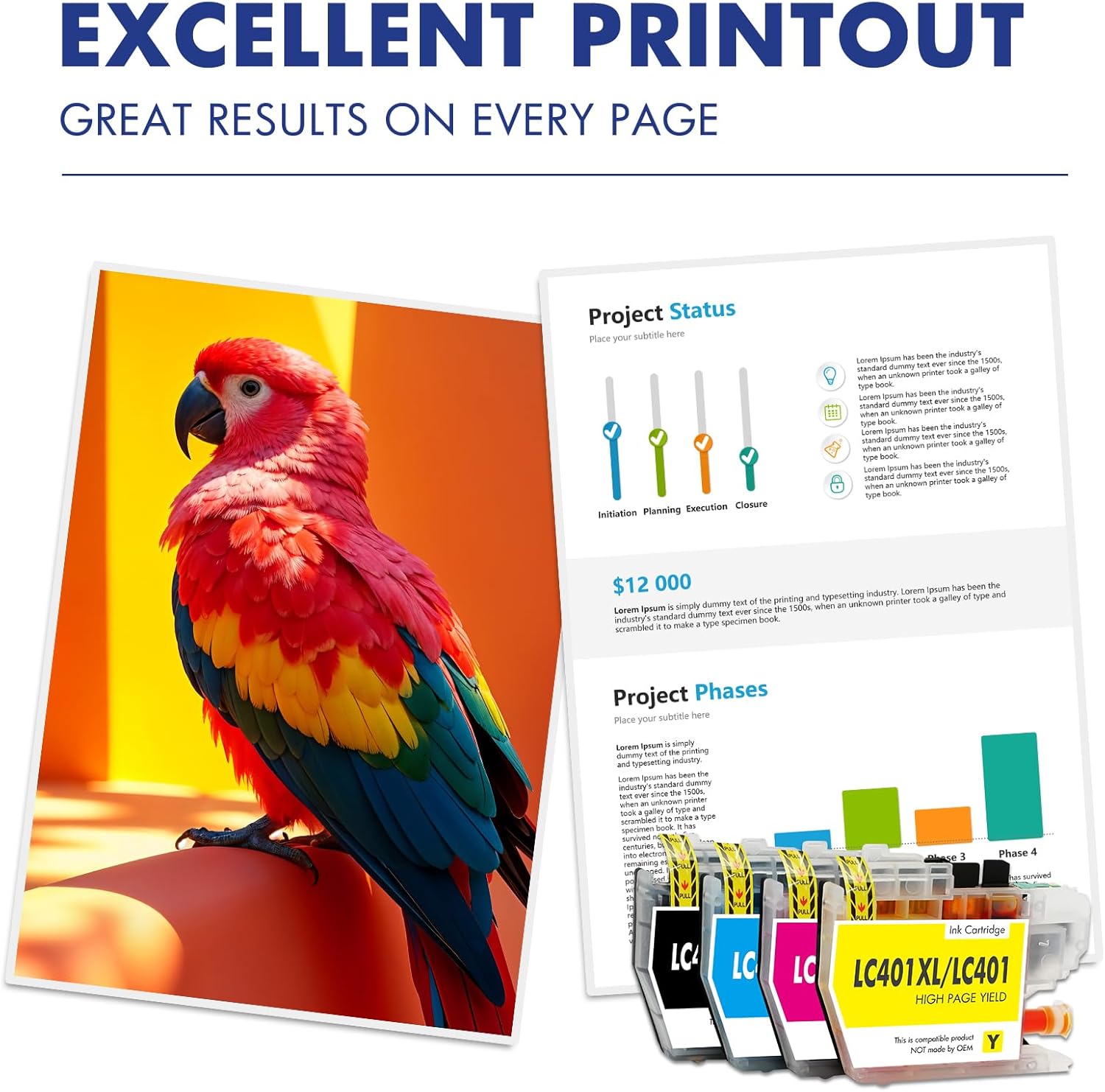 - High Page Yield: High yields up to 500 pages per LC401XL Ink Cartridge (5% coveragae*A4 paper size)