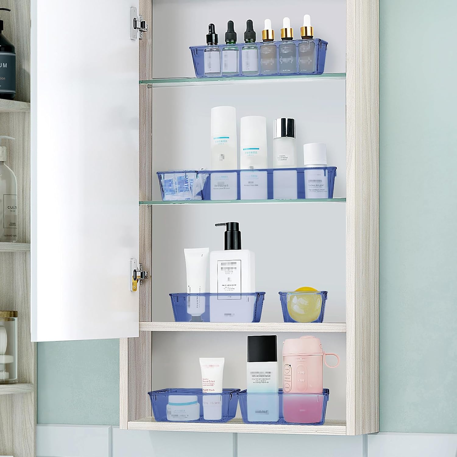WOWBOX 25 PCS Plastic Drawer Organizer Set, 4 Sizes Desk Drawer Divider Organizers and Storage Bins for Makeup, Jewelry, Gadgets for Kitchen, Bedroom, Bathroom, Office, Clear Dark Blue