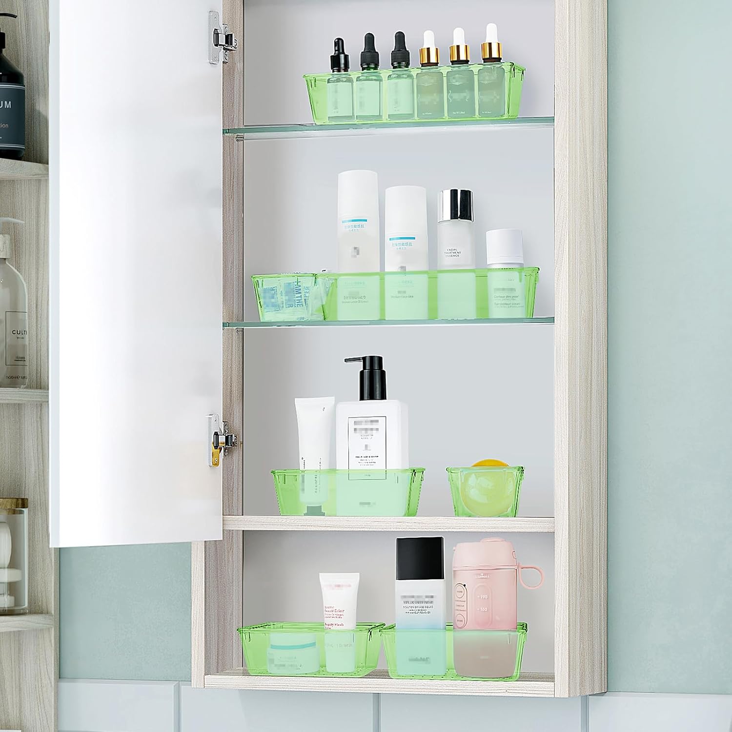 - 4 Combinations of Different Sizes: A set of cabinet organizer includes 25 storage bins of 4 different sizes. Includes: 9 x 6 x 1.8 inches (3pcs), 9 x 3x 1.8 inches(6pcs), 6 x 3 x 1.8 inches(8pcs), 3 x 3 x 1.8 inches(8pcs).