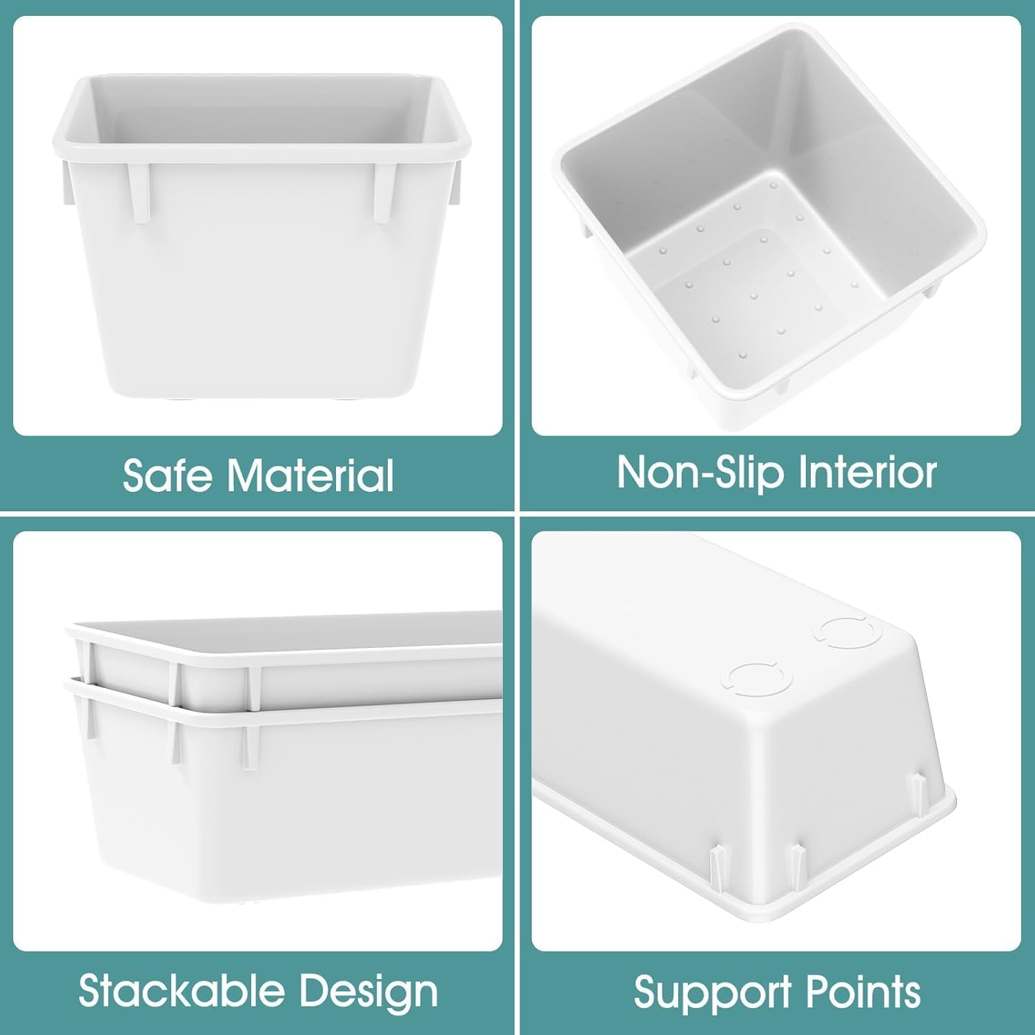 - Long Lasting and Non-Slip: The plastic has 3-5 times the impact strength of other materials and is robust and long lasting. The bottom of the storage organizers has a non-slip design to prevent the tray from moving around when the drawer is opened and closed.